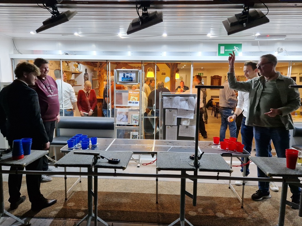 Der amtierende Schützenkönig Manfred Stevens hat eine alte Tradition aufleben lassen. So wie die Schützenköniginnen in den vergangenen Jahren für die Damen einen Kaffee-Nachmittag angeboten hatten, so hat König Manfred die Herren der Donatusschützen und benachbarter Vereine – wie es einst mal Tradition war – zum Königsbier eingeladen. Von den Damen waren an diesem Abend vier liebenswerte Schützenschwestern im Vereinsheim mit dabei. Sie sorgten hinter der Theke und am „klassischen Mett-Igel-Buffet“ dafür, dass niemand Durst und Hunger leiden musste. Auch das Bier-Pong kam zu seinem Einsatz. Es war ein gemütlicher Abend in froher, gut gelaunter Herrenrunde, der erst nach Mitternacht ein Ende fand.